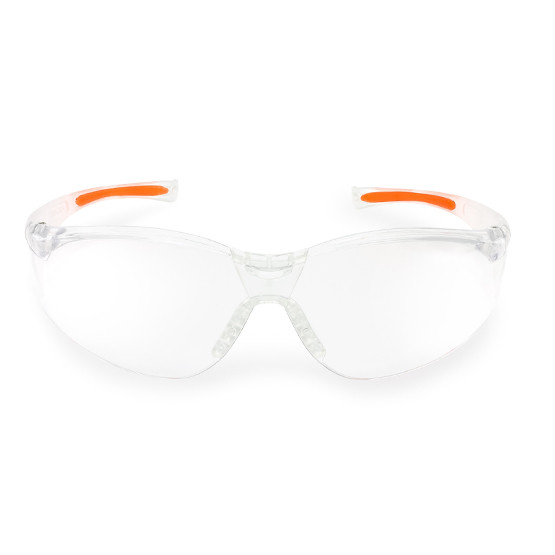 – Safety glasses, clear lenses. The curved design fits the face and is suitable for Asian faces. As well as providing greater safety