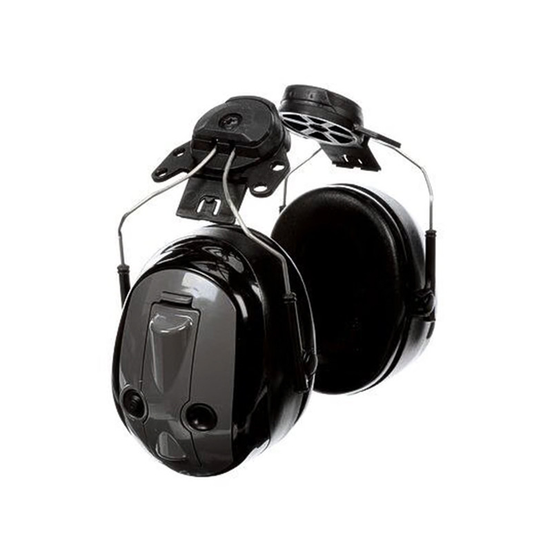 – Helmet-mounted sound-reducing earmuffs. Protects against both high frequency sounds. And low well.