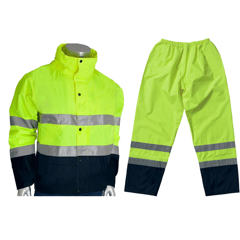 – Hoodie and rain cover pants, Polyester/PVC material. – Light weight, only 0.18 mm thick. – 2 layers of protection with zippers and covered with another layer of buttons. – lemon yellow – Attach silver reflective stripes to the front and back of shirts and pants.
