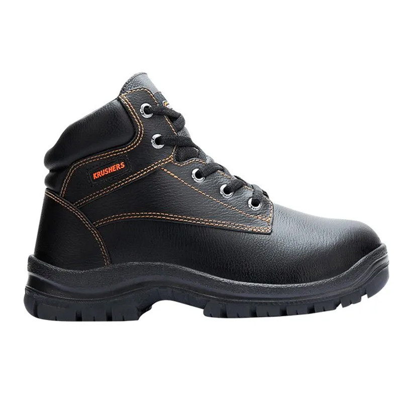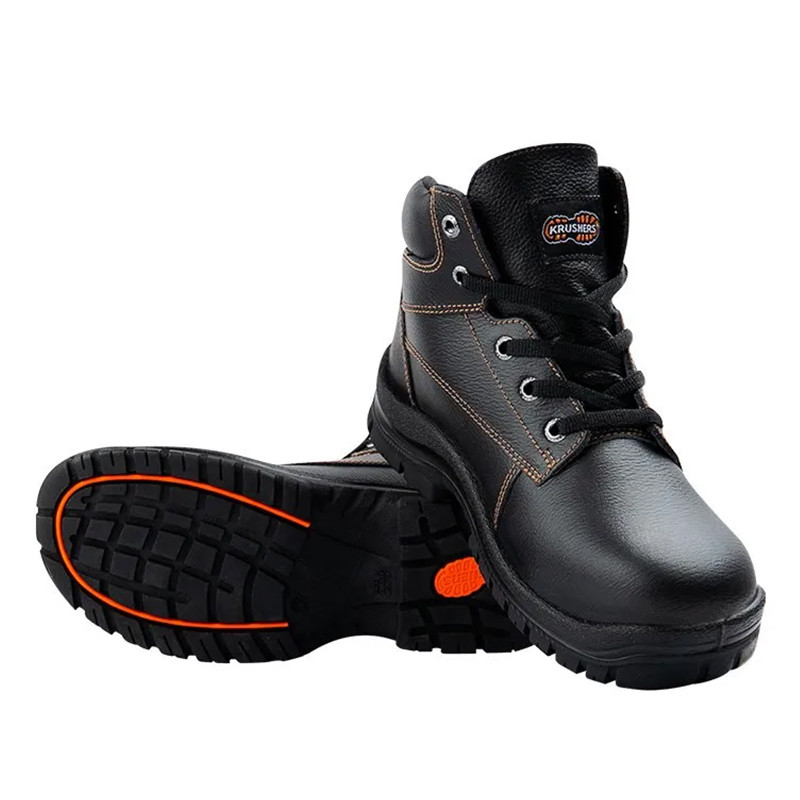 -Black ankle-high safety shoes, reinforced steel toe, PU/TPU sole, DALLAS model, prevents slipping well.
