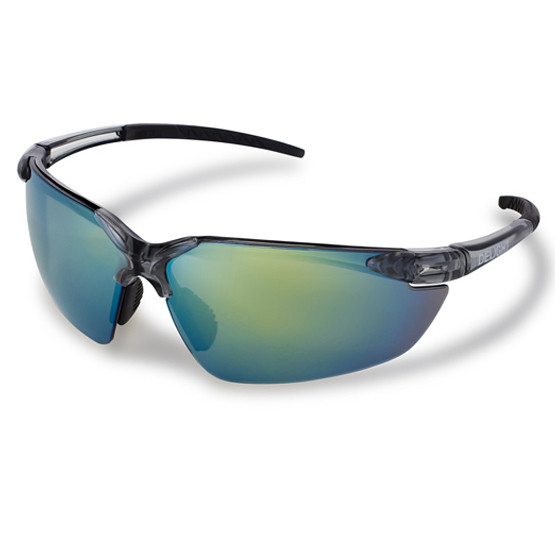 – Safety glasses, gray lenses, yellow mercury coating. The curved design fits the face and is suitable for Asian faces. The glasses legs are coated with thermoplastic. (Thermoplastic) anti-slip