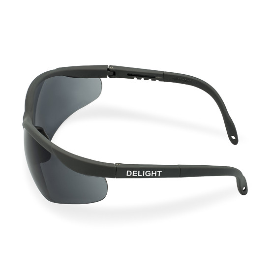 – แว่นตานิรภัยเลนส์เทา กรอบดำ ดีไซน์โค้งกระชับใบหน้าเหมาะสำหรับใบหน้าชาวเอเชีย