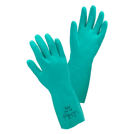 – ถุงมือ ไนไตร มีซับใน สีเขียว ป้องกันสารเคมี น้ำมัน จาระบี กรด ด่าง
