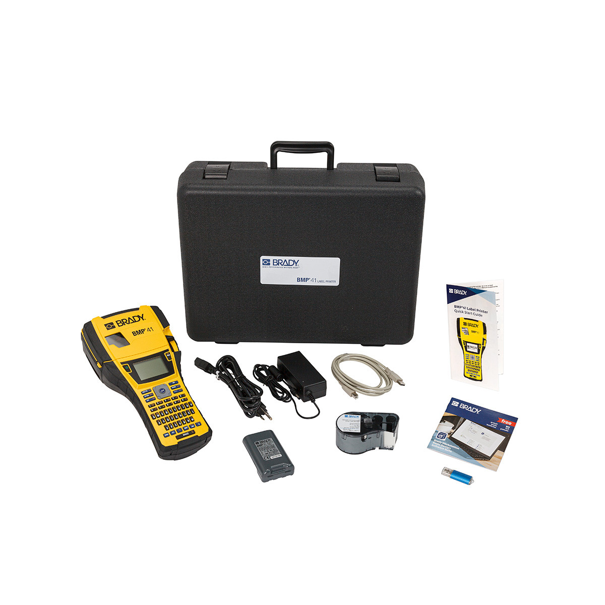 | Includes | (1) AC Adapter/Battery Charger (M-AC-143110), (1) Battery Pack (BMP41-BATT), (1) BMP41 Printer (BMP41), (1) BMP41 Indoor Outdoor Vinyl Labels (MC1-1000-595-WT-BK), (1) Brady CD with Printer Driver, (1) CD with Printer User Manual, (1) Free Brady Workstation Basic Design Suite Download, (1) Printer Hard Case (BMP41-HC), (1) Quick Start Guide, (1) USB Cable (M-USB-103788) |